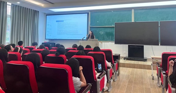 随后,研究生辅导员徐开艳老师就研究生管理相关制度进行了详细解读,重点讲解了奖学金评定细则、请假流程与日常管理要求,帮助新生尽快熟悉校园生活规范。她还特别介绍了学院为研究生提供的各类支持服务,包括学术辅导、心理支持和就业指导等。