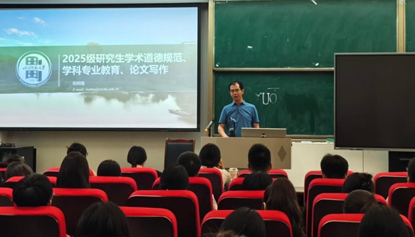 下午,柏明强副院长以“恪守学术规范、追求科学真理”为主题做专题报告。他回顾了学院自创立以来的发展历程和学术传统,强调了数学学科在国家战略和科技发展中的重要作用,鼓励新生树立远大志向,勇攀科学高峰。柏院长详细介绍了学院在代数学、几何学、概率统计等方向的研究特色和优势,帮助新生更好地了解学科发展方向。柏院长特别强调学术道德建设,从学术诚信、论文撰写规范、科研伦理等方面提出明确要求。他指出,学术道德是科研工作的生命线,任何投机取巧、违反规范的行为都是对科学精神的背离并通过具体案例,详细说明了学术不端行为的严重后果,提醒同学们要时刻保持严谨求实的科研态度。在论文写作指导方面,系统讲解了文献查阅、实验设计、数据分析和论文撰写的各个环节,特别强调了创新性和学术规范的重要性。他建议新生要尽早与导师沟通,明确研究方向,积极参与学术活动,培养科研创新能力。