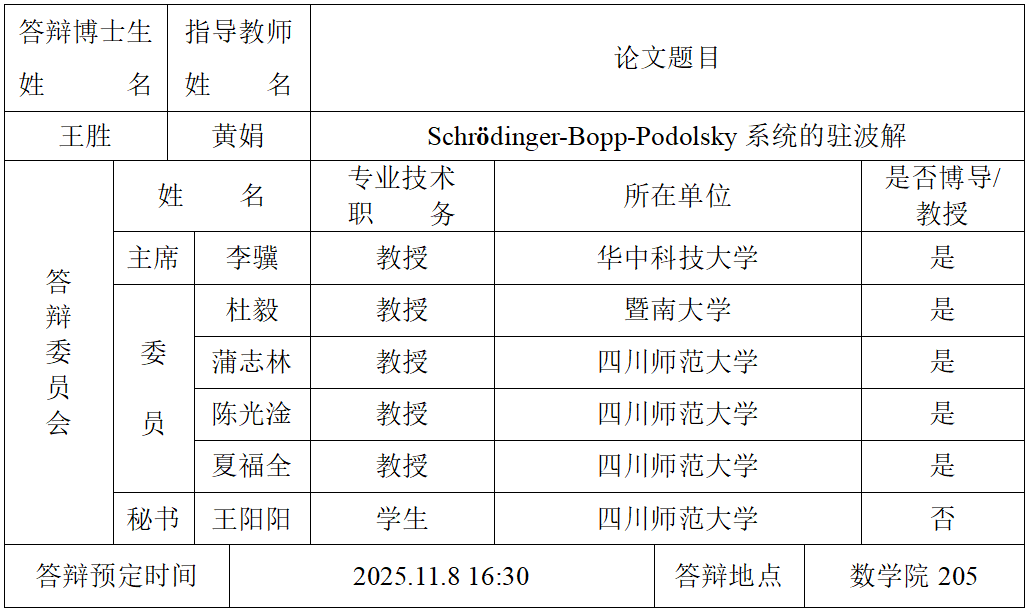 球速(中国)2025年秋季博士研究生学位论文答辩公告(第一期),具体安排如下: