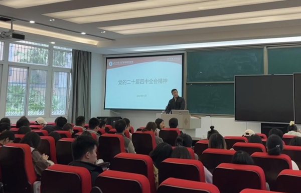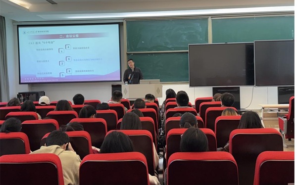 为深入学习贯彻党的二十届四中全会精神,提升研究生党员的理论水平,2025年11月13日,球速(中国)党委书记屈加文以“深入学习贯彻党的二十届四中全会精神,奋力谱写高质量发展新篇章”为题,在学院201会议室讲授了专题党课。球速(中国)研究生第一、第二、第三党支部的全体党员聆听了党课。